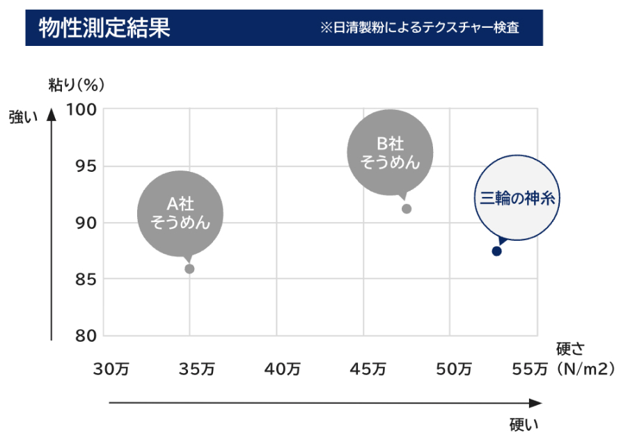 抑制することが可能に。作りたての味わい・香りを保ち、熟成による“ゆでのび”をしにくい素麺に仕上がります。
