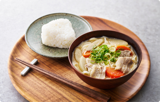 お野菜たっぷりの豚汁に、のどごしの良い素麺を加えて食べ応えUP!